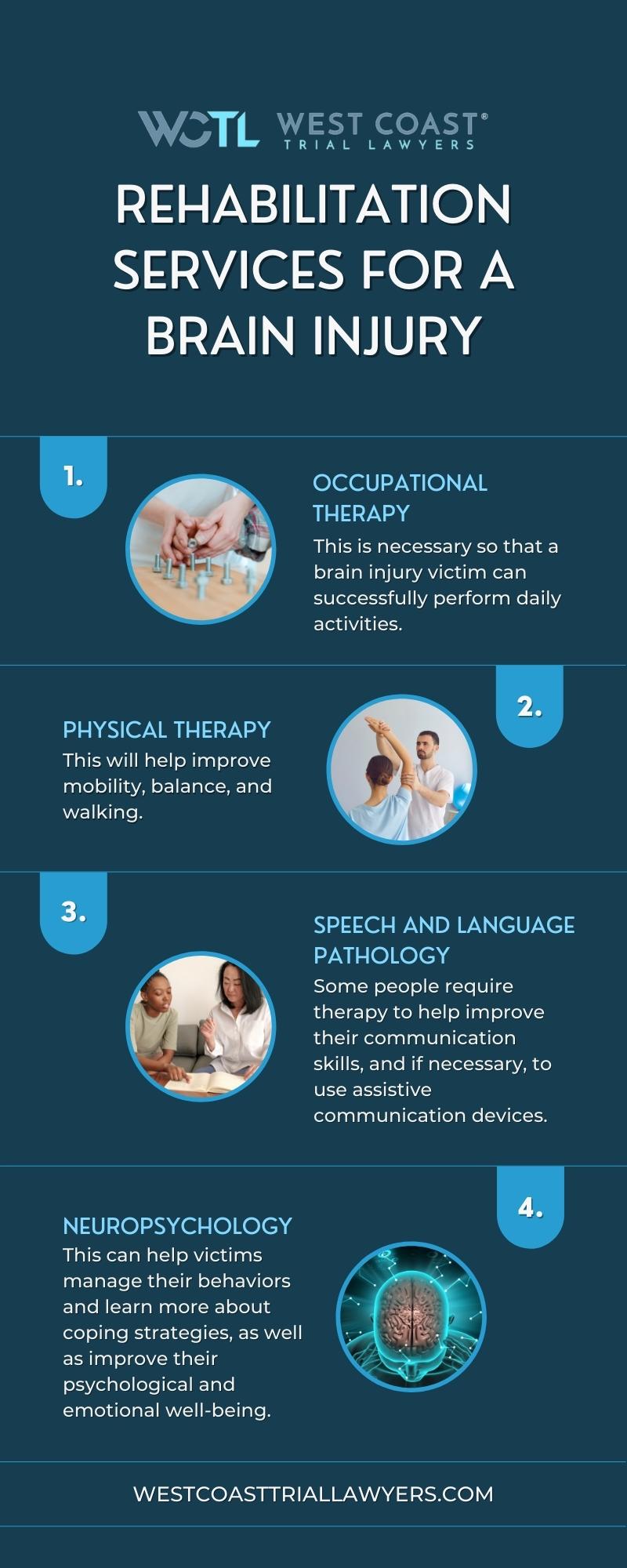 - Occupational therapy. This is necessary so that a brain injury victim can successfully perform daily activities.