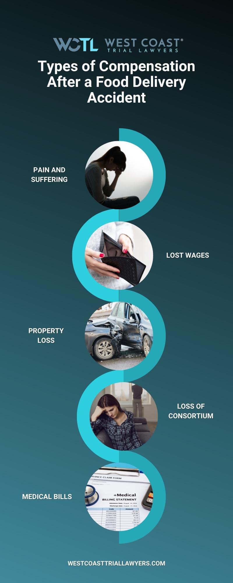 The types of compensation a Beverly Hills food delivery accident victim may be entitled to include: