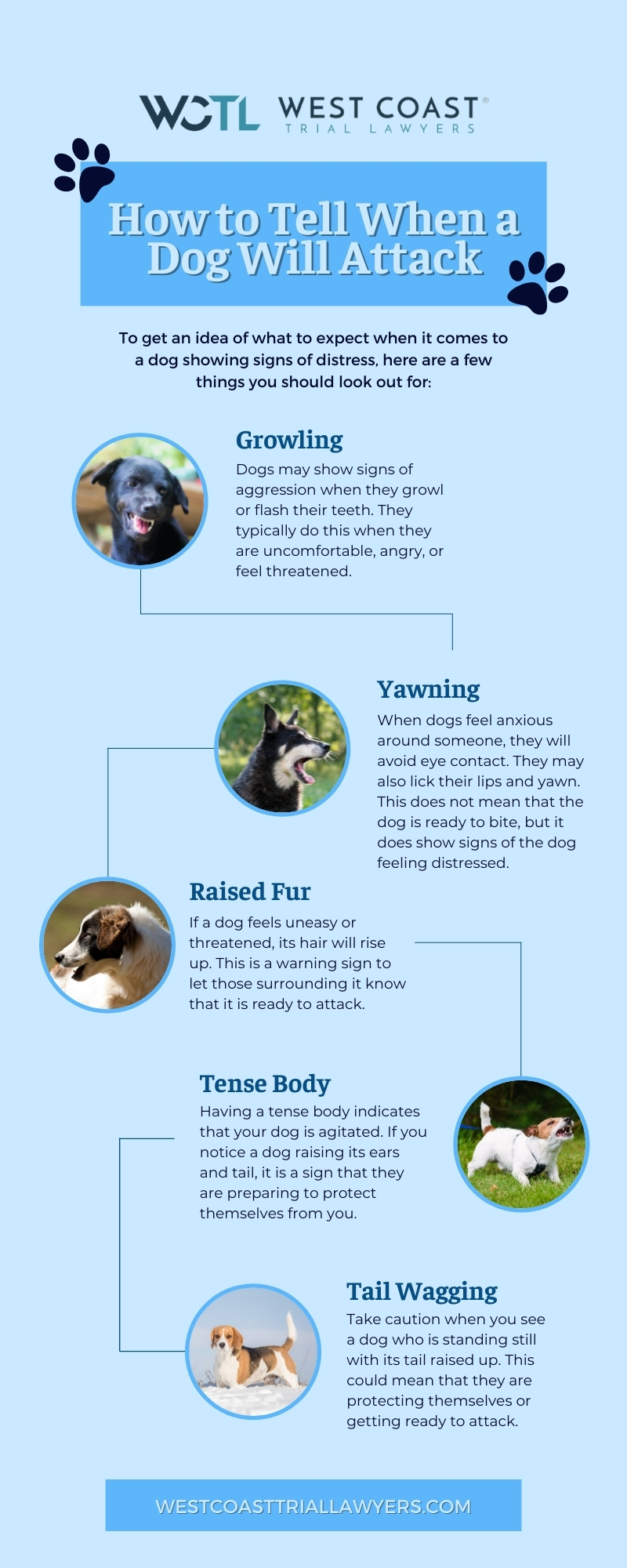 It can be difficult for dog owners to know when their dog is about to bite someone. To get an idea of what to expect when it comes to a dog showing signs of distress, here are a few things to look out for: