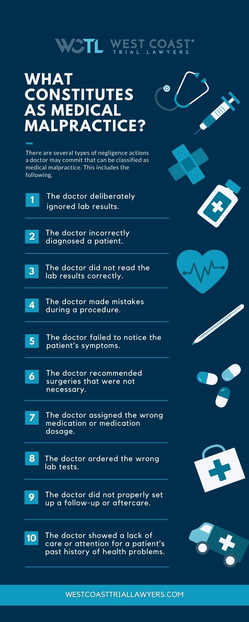 There are several types of negligence actions a doctor may commit that can be classified as medical malpractice. This includes the doctor: